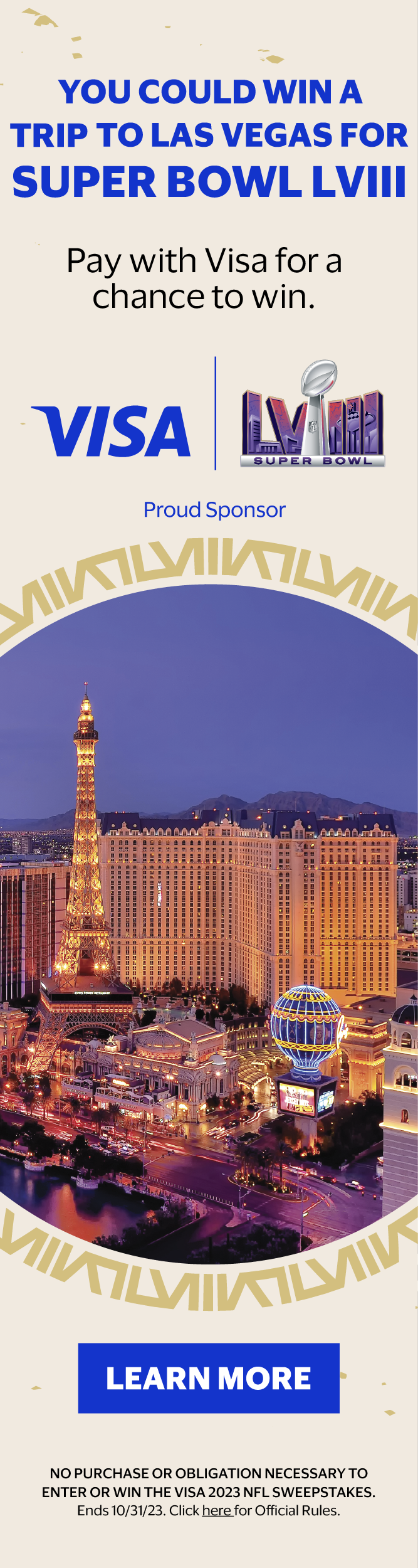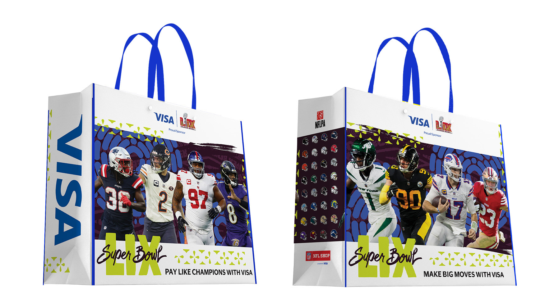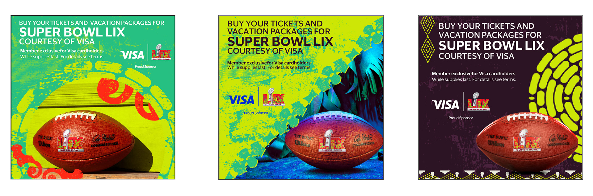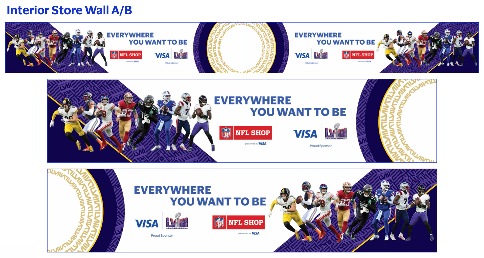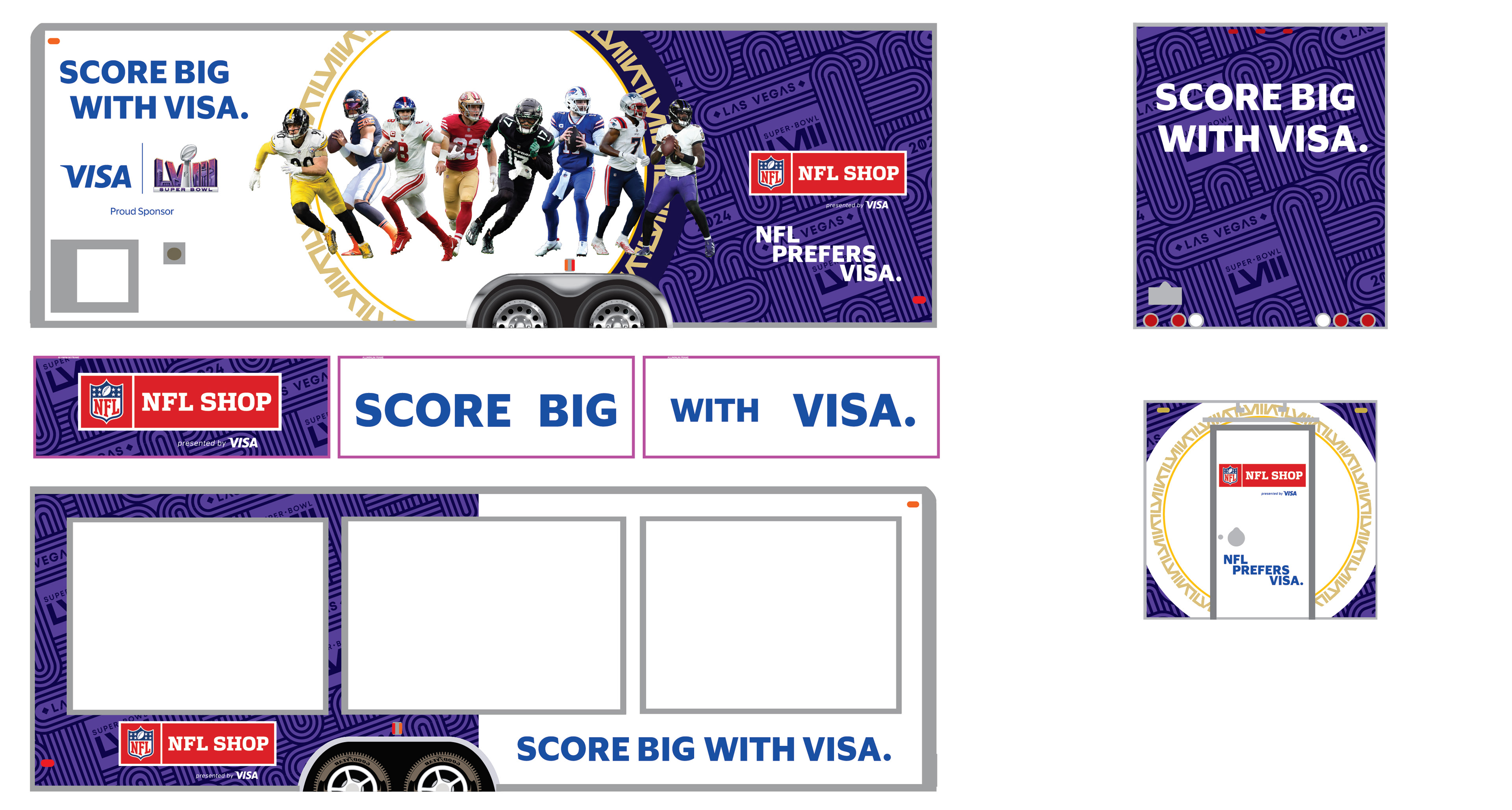 During my time at Visa, I contributed to a range of Super Bowl initiatives, from large-scale environmental signage to branded bags distributed to thousands of attendees at the NFL Experience. I also developed collateral for multiple clients leveraging the Super Bowl for their own marketing efforts. This body of work demonstrates my ability to deliver cohesive, high-visibility creative across diverse formats and stakeholder needs.